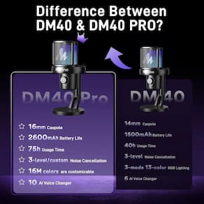 Microfone wireless maono dm40 pro s braço articulado preto Microfone wireless gamer maono dm40 pro s com ai rgb braço articulado preto - mudança de voz com ia - divirta-se com 10 efeitos de voz com inteligência artificial, transformando sua voz em personagens de games, super-heróis e muito mais. função disponível apenas para pc via maono link - liberdade sem fios + longa duração de bateria - experimente total liberdade com até 75 horas de autonomia para jogar, gravar ou fazer streaming sem interrupções. - cancelamento de ruído com um toque - escolha entre quatro níveis de redução de ruído baixo, médio, alto e personalizado e garanta áudio limpo em qualquer ambiente. - qualidade de som profissional - áudio rico, detalhado e imersivo, ideal para podcasts, transmissões e dublagens. - controle inteligente com maono link - ajuste facilmente o equalizador, efeitos de voz, cancelamento de ruído, volume e iluminação rgb através do app maono link. - compatível com vários dispositivos - conexão via usb e usb-c, funcionando perfeitamente com pcs, notebooks, celulares e macs. - iluminação rgb com mais de 16 milhões de cores - personalize seu setup com efeitos dinâmicos de luz para uma experiência ainda mais envolvente. Potente e fácil de usar - controles intuitivos com botão de mudo, ajuste de ganho e monitoramento em tempo real com zero latência. Homologação Anatel: 149822010251 Marca: Não Informado