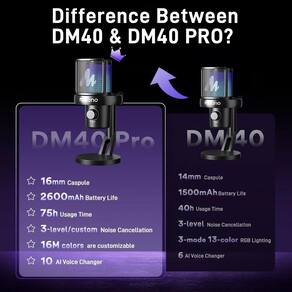 Microfone wireless maono dm40 pro s braço articulado preto Microfone wireless gamer maono dm40 pro s com ai rgb braço articulado preto - mudança de voz com ia - divirta-se com 10 efeitos de voz com inteligência artificial, transformando sua voz em personagens de games, super-heróis e muito mais. função disponível apenas para pc via maono link - liberdade sem fios + longa duração de bateria - experimente total liberdade com até 75 horas de autonomia para jogar, gravar ou fazer streaming sem interrupções. - cancelamento de ruído com um toque - escolha entre quatro níveis de redução de ruído baixo, médio, alto e personalizado e garanta áudio limpo em qualquer ambiente. - qualidade de som - áudio rico, detalhado e imersivo, ideal para podcasts, transmissões e dublagens. - controle inteligente com maono link - ajuste facilmente o equalizador, efeitos de voz, cancelamento de ruído, volume e iluminação rgb através do app maono link. - compatível com vários dispositivos - conexão via usb e usb-c, funcionando perfeitamente com pcs, notebooks, celulares e macs. - iluminação rgb com mais de 16 milhões de cores - personalize seu setup com efeitos dinâmicos de luz para uma experiência ainda mais envolvente. Potente e fácil de usar - controles intuitivos com botão de mudo, ajuste de ganho e monitoramento em tempo real com zero latência. Homologação Anatel: 149822010251 Marca: Não Informado Ean: 6972237682547