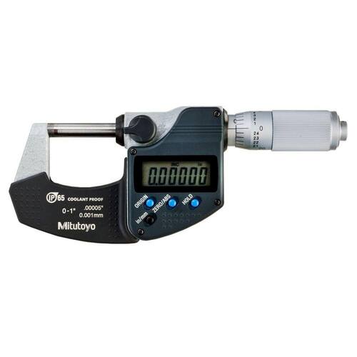 Micrômetro Externo Digital com Catraca 0-25mm Mitutoyo 293-240-30Categoria de proteção IP 65, contra poeira e jatos de óleo e água.Superfície anti-derrapante com pontos de relevo facilitando a utilização com uma das mãosDetalhesAlimentação: Bateria SR-44, maior 1,2 anos em uso normalProteção contra pó e salpicos de águaSimCapacidade 0-25 mm Resolução 0,001 mm Arco esmaltadoON/OFF automáticoInclui estojo, chave e 1 bateriaCódigo do Fabricante: 293-240-30Imagem meramente ilustrativa.