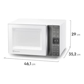 Marca Electrolux Tensão Elétrica 220V Capacidade 23,00 L Potência 1100 W Cor Branco Altura 29,00 cm Largura 46,10 cm Profundidade 35,20 cm Comprimento 35,20 cm Diâmetro 29,00 cm Espessura 46,10 mm Dimensão 35.2 cm Acompanha Puxador com Puxadores Material Aço, Plástico e Vidro Produto Micro-ondas Nível de Eficiência A Eficiência Energética 56,30 % Consumo de Energia em Modo Espera 0,02 kWh/dia Volume Total 23 L Volume Útil 12 L Número de Registro 64782022