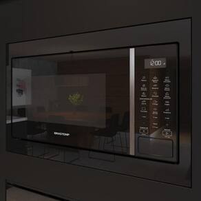 Micro-ondas de embutir com 32 litros de capacidade, 1400W de potência, 10 níveis de potência, design moderno em aço e acabamento preto.Função Grill
