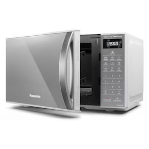 Micro-ondas Panasonic 21L com Tecnologia Pega Fácil, design moderno e espelhado.Função Grill