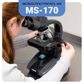 Você já parou para pensar em como pequenos detalhes podem mudar completamente a forma como entendemos o mundo ao nosso redor? O Microscópio Biológico Profissional 40x-1600x foi desenvolvido para proporcionar a máxima precisão em suas observações, revelando até os menores detalhes com clareza impressionante. Com uma faixa de ampliação de 40x até 1600x, você pode examinar células, tecidos ou amostras biológicas com uma nitidez de outro nível. O sistema de iluminação LED ajustável, junto com o condensador e diafragma de íris, garante que a luz seja projetada de maneira ideal sobre a amostra, maximizando o contraste e a qualidade da imagem - mesmo em condições de baixa luminosidade. O cabeçote binocular rotativo de 360 graus proporciona flexibilidade e conforto durante as observações, enquanto o estágio mecânico de dupla camada permite um controle preciso e suave das amostras, facilitando o ajuste exato na visualização. Além disso, com um corpo robusto de metal e componentes ópticos de vidro, este microscópio é construído para durar e manter a estabilidade necessária para uso prolongado em laboratórios, universidades ou até mesmo em casa. Se você é um profissional que busca precisão ou um entusiasta da ciência, o MS-170 é a ferramenta certa para explorar os detalhes invisíveis do mundo microscópico. Ele é fácil de usar para iniciantes? Sim! Apesar de ser um microscópio profissional, o MS-170 foi projetado com controles intuitivos, como o foco coaxial de ajuste fino e grosso, tornando a experiência de uso acessível tanto para iniciantes quanto para especialistas. Como ele se comporta em condições de pouca luz? Graças à iluminação LED ajustável e ao condensador Abbe NA 1.25, você tem controle total sobre a intensidade da luz, garantindo imagens nítidas e detalhadas, mesmo em condições de baixa luminosidade. Área da mesa de trabalho: 115 x 125 mm Dimensões: 21,6 cm x 17,5 cm x 35,8 cm Alimentação: 110-220V