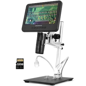 Tamanho da tela: 7 polegadas Sensor de imagem: sensor HD de 2 megapixels Saída de vídeo: FHD 1920x1080 30FPS; 1080P 1440x1080 30FPS;720P 1280x720 30FPS; Formato de vídeo: AVI Ampliação: até 350X Resolução da foto: máximo de 12M(4032x3024) Formato da foto: JPG Taxa de quadros: máximo de 30f/s Armazenamento: cartão micro-SD, até 64G Suporte para PC: Não Fonte de alimentação: 5V DC Fonte de luz: 2 LED com suporte (removível) Tamanho do suporte: 20 cm* 12 cm* 19 cm Certificação: CE/FCC/ROHS Conteúdo da embalagem: Microscópio × 1 suporte de plástico × 1 Instruções × 1 controle remoto infravermelho × 1 cabo de comutação × 1 adaptador de alimentação × 1