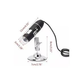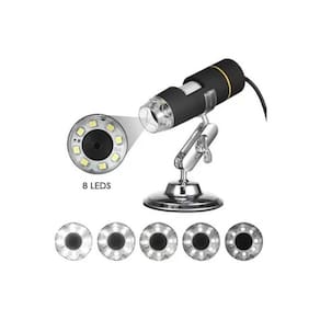 Aumento 1.1600X: aumenta 1600x, captura claramente os detalhes. 8 luzes LED integradas.2. Microscópio de bolso de alta qualidade: Mango antideslizante Premium, confortável e durável. Este microscópio portátil é um brinquedo perfeito para que as crianças explorem o micromundo, também adequado para pessoas que amam a observação de insetos, peles, PCB e muitos objetos interessantes.3. Exame de escala, inspeção têxtil, inspeção de joias, inspeção de coleções/moedas, inspeção de impressão, inspeção de PCB ou PCBA, etc.4. O microscópio é feito de IC de alta qualidade e componentes eletrônicos, com uma qualidade de imagem clara, baixo consumo de energia, alta resolução, se aplica a objetos pequenos para serem mais grandes.5. A produção de fotos e vídeos é a melhor opção de reconhecimento de objetos pequenos.Especificaciones principales:1 Sensor de imagem: 0,3 M HD Sensor CMOS2. Resolução da foto: 2560x19203. Resolução de captura de vídeo: 640x4804. Faixa de focagem: Foco manual de 15 ~ 44mm5. Velocidade de fotogramas: máx. 30f/s6. Aumento: 1600X7. Formato de vídeo: AVI Outras especificações:1. Iluminação ajustável: 8 diodos LED integrados2. Formato de disparo rápido: JEPG/BMP3. Interface de PC: USB3.0 e USB2.0 e USB1.14. Fonte de alimentação: porta USB (5V DC) 5. Compatibilidade do sistema: Win2000/2003/XP/Win7/Win86. Dimensões: aprox. 11x3 3cm/4,33x1,18 polegadas Tamanho da base: 7x 8cm/2,76x3,25 polegadas