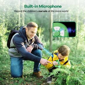 - Microfone embutido: este microscópio para crianças não apenas amplia pequenas maravilhas, mas também grava áudio, tornando-o ideal para capturar vídeos com som sincronizado. Narre descobertas em tempo real, aprimorando a exploração educacional com experiências visuais e auditivas interativas