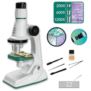 Microscópio Infantil Educacional Iniciante Stem Zoom 1200x Cor BRANCO Microscópio Infantil Educacional Iniciante Stem Zoom 1200xDesperte o cientista que existe dentro do seu filho com o Microscópio Infantil Educacional Iniciante STEM Zoom 200x, 600x e 1200x.Este microscópio é mais do que um brinquedo - é uma ferramenta educacional projetada para estimular a curiosidade e a criatividade das crianças enquanto as introduz ao emocionante mundo microbiano. Com ampliações de 200x, 600x e impressionantes 1200x, as crianças podem explorar detalhes fascinantes de espécimes como folhas de plantas, fibras de tecidos, insetos e muito mais.Equipado com iluminação LED, este microscópio proporciona uma observação clara e detalhada, permitindo que os pequenos cientistas descubram um mundo invisível a olho nu. Além disso, inclui todos os acessórios necessários, como pinça, lâminas e muito mais, para uma experiência completa de laboratório.Transforme o aprendizado em uma aventura emocionante com o Microscópio Infantil Educacional Iniciante STEM Zoom 200x, 600x e 1200x