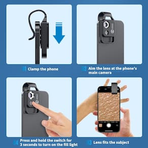 - Ferramenta poderosa: Chega de etapas tediosas, abra a câmera do celular e tire fotos e vídeos com foco rápido, a qualquer hora e em qualquer lugar para obter microfotografia, seu celular é um microscópio.