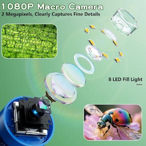 - Câmera HD 1080P e tela IPS de 2,0 polegadas: o microscópio infantil portátil está equipado com uma câmera de microscópio 1080P de 2 megapixels, capaz de capturar fotos e vídeos de alta definição. A tela IPS de 2 polegadas oferece cores precisas e detalhes nítidos, apresentando visuais microscópicos ricos em tempo real e aprimorando a experiência de observação imersiva. 8 luzes de LED embutidas garantem uma visão clara e clara mesmo em condições de pouca luz