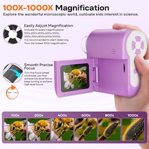 Este microscópio portátil para crianças é o amigo perfeito para explorar o mundo microscópico. Ele tem 10 níveis de ampliação, de 100x a 1000x, para que as crianças possam ver detalhes incríveis de perto. A roda de foco suave e as luzes LED ajustáveis de 6 níveis garantem uma visão clara e nítida. Além disso, a tela 4K HD de 2 polegadas mostra tudo em tempo real, oferecendo uma visão clara e detalhada para tornar a exploração ainda mais emocionante. O recurso 3 em 1 torna muito fácil tirar fotos, gravar vídeos e reproduzir. Com cinco filtros de cores, você pode alternar com um toque para tornar cada sessão de visualização mais divertida e variada. O cartão SD de 32 GB pode armazenar cerca de 3.200 fotos ou 340 horas de vídeo, para que as crianças possam capturar suas descobertas a qualquer hora e em qualquer lugar. Ele também vem com 5 slides preparados, um suporte estável e uma bateria recarregável de 4 horas de longa duração com carregamento rápido tipo C. Não precisa se preocupar com a falta de energia, mesmo em aventuras ao ar livre. Além disso, ele pode se conectar ao PC para uma análise mais profunda, o que o torna ótimo para estudantes e professores aprenderem e explorarem mais. Este microscópio portátil é a escolha perfeita, seja como presente de aniversário, ferramenta para despertar a curiosidade em casa ou para experiências práticas nas aulas de ciências. Na exploração ao ar livre, esse microscópio portátil permite que as crianças explorem insetos, plantas, folhas e muito mais de perto, oferecendo a elas uma maneira totalmente nova de ver o mundo. Não é apenas um gadget divertido; é o presente ideal para inspirar as crianças a descobrir a ciência e explorar as maravilhas ao seu redor. -?Zoom digital preciso de 100x-1000x?Este microscópio potável para crianças com ampliação de 100x-1000x permite que pequenos cientistas vejam detalhes invisíveis a olho nu em uma variedade de cenários. Roda de foco suave para uma focagem precisa e rápida, fácil de usar: gire a roda de foco no sentido horário, primeiro você alcança o foco de baixo nível, continue girando para obter um foco de alto nível. Insetos no jardim, plantas no quintal e lâminas de amostras preparadas podem ser claramente observados usando este microscópio portátil. -?Resolução 4K HD, 6 luzes LED ajustáveis?Um microscópio infantil de alta qualidade: tela de 2 polegadas, resolução fotográfica de 3840* 2160P e resolução de vídeo 1920* 1080P. Este microscópio potável com tela fornece observação clara e detalhada, educação domiciliar, educação científica ou exploração ao ar livre. Possui 6 níveis de brilho ajustável, a luz é suave e suave para os olhos. Este microscópio portátil se adapta a diferentes condições de iluminação, tornando a exploração científica mais divertida. -?Microscópio infantil 3 em 1, vem com cartão SD de 32g?Este microscópio para crianças é totalmente funcional e fácil de usar, com um manual de instruções detalhado para ajudá-lo a dominar rapidamente o uso. Este microscópio portátil infantil combina as funções de foto, vídeo e reprodução, perfeito para pequenos exploradores. Vem com um cartão SD de 32g para permitir que seus filhos armazenem suas explorações, aproximadamente 3200 fotos e 340 horas de vídeo. A observação com 5 filtros de cores terá uma experiência diferente. -?Portátil portátil, conexão ao PC?Este microscópio portátil vem com uma pulseira, portátil e leve, que acompanha você aonde quer que você vá, como aulas de ciências ou exploração ao ar livre. Este microscópio para crianças usa um conector tipo C para carregamento rápido e dura cerca de 4 horas com carga total. Conecte-se a um PC usando o cabo USB correspondente para ver imagens maiores e mais detalhadas em seu computador. -?Observação portátil ou observação com suporte?Dispositivo portátil para observar objetos como abelhas, folhas, insetos, pedras, flores, cabelos, tecidos, adequados para exploração ao ar livre. O microscópio para crianças vem com 5 lâminas e um suporte, use o suporte para observar os slides, mais fácil de focar, adequado para uso interno. O tamanho do microscópio infantil: 3,6* 2,2* 4,3 polegadas (9,3* 5,5* 10,8 cm), peso: 0,35 libras(0,16 kg). -?O que você ganha?Você receberá microscópio infantil*1, cartão SD de 32G*1, caixa de presente requintada*1, suporte para microscópio*1, cabo de carregamento tipo C*1, lâminas de microscópio preparadas*5, manual de instruções*1.