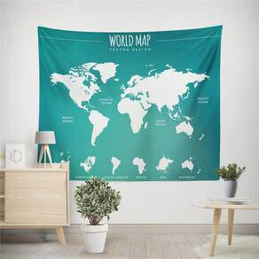 Microtecido de parede Tapeçaria World Map 150x130cm para quarto