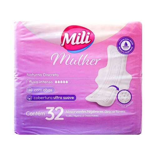 O Absorvente Mulher Noturno Discreto Com Abas MILI foi desenvolvido para garantir proteção durante a noite com máximo conforto. Ideal para fluxo intenso, possui abas que proporcionam melhor fixação, cobertura ultra suave e material macio e respirável. Com a tecnologia Comfort Points, adapta-se ao corpo oferecendo segurança, conforto e discrição durante o sono.