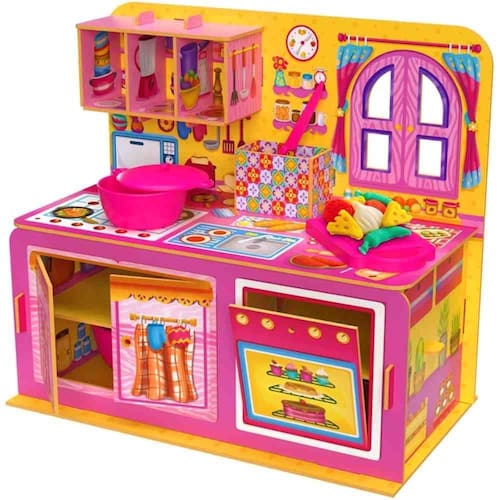 Contém: 1 Cozinha 3D (para montar) 1 Kit de utensílios de cozinha com 7 peças (de plástico) 12 Massinhas coloridas 20 Utensílios de cozinha coloridos e ilustrados, em madeira 1 Molde de alimentos salgados 1 Molde de frutas 1 Molde de doces 1 Seringa (para moldar em formato de macarrão) 1 Pote para guardar as massinhas 1 Manual de instruções