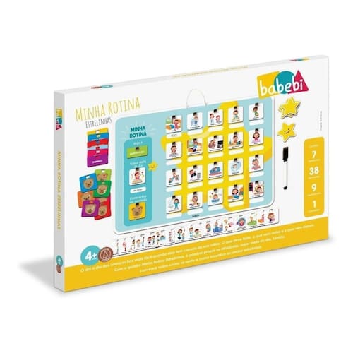 O dia a dia das crianças fica mais fácil quando elas têm clareza da sua rotina. O que devem fazer, o que vem antes e o que vem depois. Com o quadro de rotinas é possível propor atividades, meta do dia, horários, conversar sobre como se sente e ainda conquistar estrelinhas como incentivo. Com o quadro de rotina para filhos se cria ótimas oportunidades para o diálogo entre família em diversos níveis, como sentimentos, valores, responsabilidades, até qualidade de vida e futuro. Cada família é única e achará o seu próprio jeitinho de melhor utilizar esta tabela de rotina diária infantil. Feito de madeira reflorestada, contém 1 quadro medindo 38 27 cm e 7 dias da semana, 9 sentimentos, 38 atividades/metas, 1 canetinha de escrever e apagar e 1 saco de pano. 38 rotinas / metas: Acordar Escovar os dentes Trocar as roupas Ir à escola Café da manhã Jantar Lanche Almoço Usar o banheiro sozinho Dever de casa Hora do descanso Permitido assistir TV Permitido os eletrônicos Se alimentar bem Dormir no seu quarto Brincar com jogos Atividades manuais Brincar ao ar livre Poupar Hora de dormir Escovar os dentes Tomar banho Leitura Orar / rezar Beber mais água Organizar a bagunça Arrumar sua cama Ajudar nas tarefas do lar Cuidar do pet Ir à fono. / T.O. / Psico. Ser gentil e amigável Aula de... Aula de... Não gritar / palavrões Aula de inglês / francês / espanhol Aula de reforço escolar Ir ao dentista Ir à consulta médica