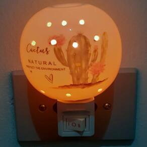 Mini Abajur Luminária De Tomada 2 Estágios com Difusor Bivolt Cor do Abajur: Cactos Natural Mini Abajur de tomada em cerâmica com 2 estágios de luz, bivolt e difusor de aromas. Temos 12 tipos de Abajur disponíveis e basta selecionar o modelo de sua preferência antes da finalização do seu pedido. Ficha Técnica - 2 Estágios de iluminação ( mais claro deixando o botão liga/desliga para o lado direito e mais escuro deixando o botão para o lado esquerdo)- Tamanho do Abajur: De 7 a 8 cm (dependendo do modelo)- Tamanho total do Mini Abajur com a tomada: De 10 a 11 cm (dependendo do modelo) - Material do Abajur: Cerâmica- Voltagem: Bivolt Modo de Uso Ao plugar o aparelho na tomada, deve-se adicionar umas 20 gotas de essência aromática ou óleo essencial na parte superior do Abajur para que o ambiente (médio de 30m) mantenha-se aromatizado por até 4 horas. Limpeza Para realizar a higienização é simples: após cada uso, retire o aparelho da tomada e utilize papel toalha ou pano úmido para limpar o excesso. Feito isso, o Abajur estará pronto para o uso de uma nova essência.