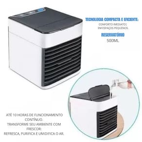 Tipo de Climatização: Frio Peso: 1 kg Dimensões: 17 cm A x 16 cm C x 14 cm L Umidificador: Sim Purificador de Ar: Sim Função de Ventilação: Sim Capacidade de Água: 0,5 L Potência: 30W 3 Velocidades de ventilação Tensão: Bivolt 110V/220V Marca: Não Informado Ean: 7895342701332