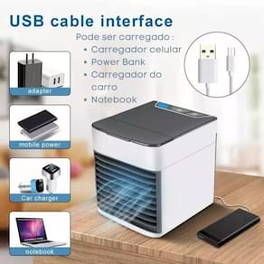 Mini Ar Condicionado de Mesa Portátil Bivolt 110/220v Branco Mini Ar Condicionado Portatil 3 em 1 Umidifica Purifica Climatizador Mini Climatizador Umidificador De Ar Condicionado Portátil Esse é o produto ideal para quem precisa de uma solução portátil e fácil de usar. Pode ser ligado em qualquer dispositivo que tenha entrada USB. Pode ser levado para qualquer lugar e ser transportado facilmente dentro de uma mochila. IMPORTANTE: Esse produto não é um ar-condicionado, NÃO ESPERE resfriar uma sala ou quarto inteiro. Esse produto foi projetado para uso pessoal, criando uma zona de resfriamento de até 2 metros. Esse produto não substitui um ar condicionado mas ameniza bem o calor se próximo. Um produto pequeno que entrega muito, e com ótimo custo beneficio. Esse Mini Climatizador acompanha 1 cabo USB, importante saber que ele não acompanha a fonte de alimentação. Não recomendamos o USO de fonte de carregador TURBO, isso pode danificar ou diminuir a vida útil do produto. Lembrando que ele só funciona estando conecta. Contem 3 velocidades: Baixa velocidade, média velocidade e alta velocidade. importante: Conforme você aumenta a velocidade do Mini Climatizador, o som da ventilação irá aumentar. Resumindo, ele funcionando irá fazer barulho. O produto contem 2 botões: Botão POWER: Com ele você liga o produto, automaticamente ele já começa a trabalhar na velocidade 1 BAIXA . Botão de LUZ LED: Esse botão liga o LED, mas aqui fica uma super dica importante, esse botão não liga somente o LED, ele aciona também o modo de HUMIDIFICAÇÃO do produto. Manutenção: Importante: Se você ver a muda no filtro ou perceber um cheiro de mofo, pare e limpe o filtro antes de usá-lo novamente. Mergulhe totalmente o filtro em uma panela ou tigela cheia com partes iguais de água limpa e vinagre branco, deixe de molho por 45-60 minutos. Enxágue com água morna, torça e deixe secar ao ar. Limpeza: - Para se preparar para a limpeza, ligue o Mini Climatizador até que toda a água tenha sido esvaziada do tanque de água ou segure o Mini Climatizador sobre uma pia e despeje com cuidado para evitar respingos ou derramamentos. - Remova a bandeja do filtro do Mini Climatizador . Usando água morna com sabão, limpe a bandeja do filtro e a grelha e enxágue até ficarem limpos. Deixe secar ao ar. - Se notar que o tanque de água está sujo, use uma escova pequena e flexível ou seja, escova de dentes, escova de mamadeira, etc. e limpe cuidadosamente o interior do tanque até ficar limpo. Enxágue bem com água morna. AVISOS IMPORTANTES: Se você não usar o Mini Climatizador por longos períodos de tempo, esvazie o tanque de água, ligue a unidade e defina a velocidade máxima do ventilador por pelo menos 4 horas. Isso irá secar e filtrar dentro da unidade. Limpe os filtros conforme ensinado acima para aumentar a durabilidade. - Não toque na fonte de alimentação ou no cabo de alimentação com as mãos molhadas. - Desligue o Mini Climatizador ao limpar, remover / substituir o filtro ou mover o dispositivo. - Para obter melhores resultados, coloque o Mini Climatizador em uma superfície mais alta, como uma mesa ou bancada. - Não coloque o Mini Climatizador perto de um aquecedor ou de qualquer equipamento elétrico. - Não coloque o dispositivo em passagens ou áreas de tráfego intenso onde haja a possibilidade de tropeçar ou derrubar. - Não permita que nenhum objeto estranho entre no Mini Climatizador. - Não coloque itens em cima do Mini Climatizador . - Não bloqueie as grades frontal e traseira do aparelho. - Não vire o dispositivo de cabeça para baixo. - Não mergulhe o Mini Climatizador em água ou outros líquidos. - Não coloque Mini Climatizador perto de chamas ou fontes de fogo. Itens incluso: - 1 Mini Climatizador Umidificador De Ar Condicionado Portátil - 1 Cabo usb - 1 Manual