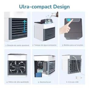Mini ar condicionado de emergência: solução rápida para ambientes quentes benefícios - portabilidade e conveniência: sendo compacto e alimentado por usb, é fácil de transportar e pode ser utilizado em diferentes locais, como escritórios, carros ou até mesmo em casa. Oferece uma solução prática para se refrescar onde quer que você esteja. - economia de energia e custo: consumindo menos energia do que um ar condicionado convencional, é uma opção econômica para manter o ambiente fresco e agradável. Isso pode resultar em economia de custos de energia a longo prazo. - melhoria do ambiente: ajuda a melhorar a qualidade do ar ao umidificar e filtrar o ar, proporcionando um ambiente mais confortável e saudável. Além disso, muitos modelos oferecem funções extras, como aromatização, criando um espaço agradável e com uma sensação de frescor. Dados técnicos - 3 velocidades - capacidade: 500ml - é umidificador - confortável e prático - dimensões: 17x16x14cm