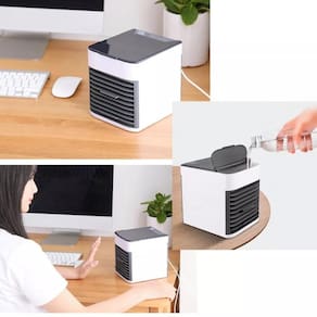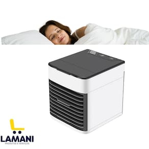 Mini ar condicionado portatil climatizador Um mini ar-condicionado portátil é um aparelho compacto e fácil de transportar que pode ser em qualquer lugar. Alguns modelos possuem um design compacto que facilita o armazenamento e permite levá-lo a qualquer lugar. Seja em uma viagem de carro, em casa ou no escritório, você pode utilizar o mini ar condicionado em qualquer lugar1. Além disso, por serem leves, pequenos e portáteis, podem ser facilmente transportados. Aliás, só o fato de ser um aparelho portátil já garante toda a praticidade Especificações: - potência: 10 w - ventos velocidade: 3 modos alto/médio/baixo - peso e dimensões - dimensões: 16 x 17 x 14,5 cm - voltagem : bivolt Marca: Não Informado