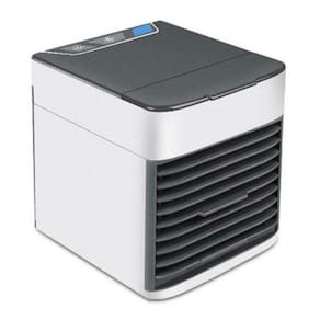 DescriçãoMini Ar Condicionado, Climatizador, Umidificador e Ventilador Portátil.Diga adeus para o calor. O queridinho da estação é o mini ar condicionado.Portátil, leve, fácil de carregar para onde for. Com ele você vai deixar o ar muito mais fresco e qualquer ambiente. E ainda mais importante, além de refrigerar o ar, ele vai umidificar o ar, evitando assim o ressecamento. Perfeito para quem sofre de alergias e doenças respiratórias.É alimentado com uma entrada usb, é muito econômico.É muito fácil de usar, é só colocar a água em seu reservatório e ligá-lo. Rapidamente ele começa o processo de evaporar a água, resfria o ambiente e retém impurezas em seu filtro.Caso queira baixar mais a temperatura, use água gelada.O Mini Ar Condicionado possui 3 niveis de ventilação, e você escolhe a que preferir.Ficha Técnica:Tamanho: 17 x 16 x 14,5 cmPeso: 1kgCor: BrancaAlimentação: Bivolt (fonte não inclusa)Funcionamento: Até 08 horas de duração da água.GarantiaNosso produto possui compra garantida e também 30 dias por defeitos de fabricação.Itens Inclusos:1 Mini Ar Condicionado1 Cabo Usb1 Manual de InstruçãoObservações:Só funciona conectado a tomada de energia.Não recomendado para veiculos.Para GELAR MAIS, insira água gelada, ou água com gelo.