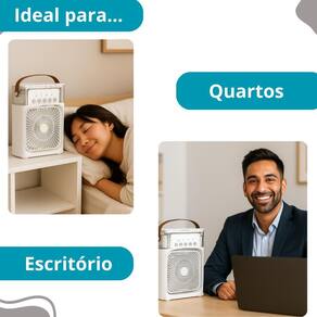 Mini ar condicionado premium para ambientes compactos com função gelo Descrição do anúncio: O climatizador é a solução perfeita para proporcionar um ambiente mais fresco e agradável. Com três opções de vaporização e iluminação decorativa led, ele é ideal para quartos, escritórios e salas.