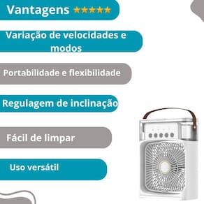 Mini ar condicionado premium para ambientes compactos com função gelo Descrição do anúncio: O climatizador é a solução perfeita para proporcionar um ambiente mais fresco e agradável. Com três opções de vaporização e iluminação decorativa led, ele é ideal para quartos, escritórios e salas.