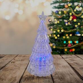 Encante sua decoração natalina com esta charmosa mini árvore de Natal decorativa, feita em acrílico transparente com glitter incorporado em toda sua estrutura. Com um design elegante e sofisticado, esta peça é ideal para complementar sua mesa, aparador, estante ou até mesmo servir como enfeite de centro de mesa.