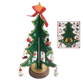 1 Mini Árvore de Madeira com 16 Enfeites