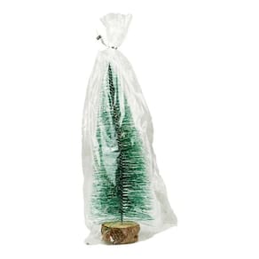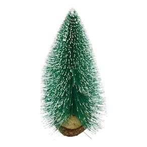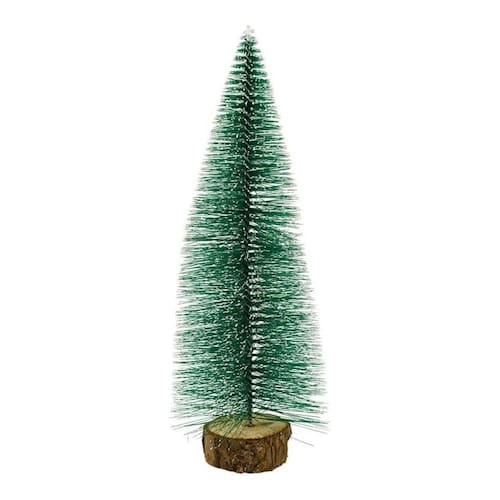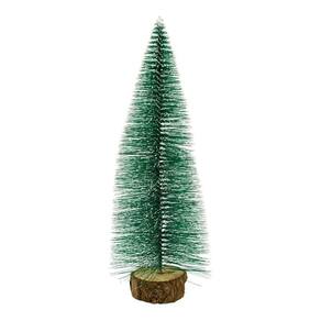 Mini árvore natalina de 25 cm de altura com base que é um tronco. Material: plástico e madeira
