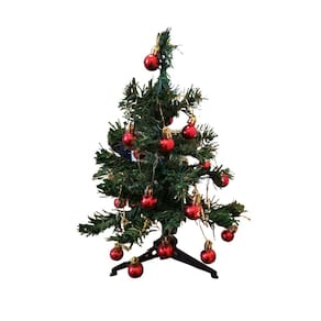 Mini Árvore Natal Decorada Com Bolinhas Vermelhas 30cm