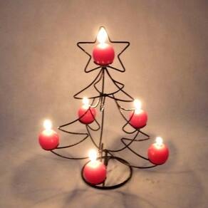 Mini árvore de Natal com velas vermelhas