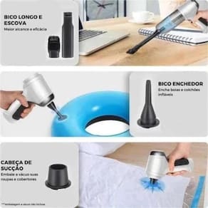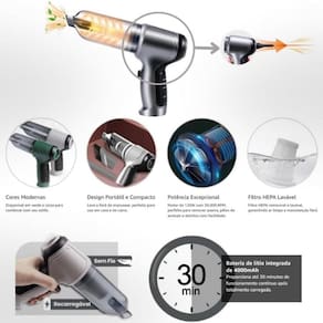 Mini aspirador automotivo, soprador, portátil, recarregável via USB.Tipo de coletor