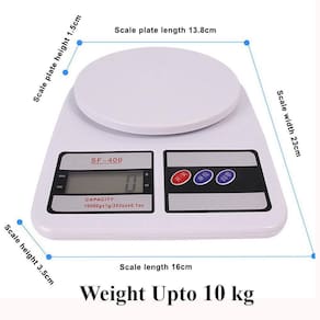 - Graduação: 1 g - Capacidade de até 10 kg - Equipada com um sistema de alta precisão de calibragem - Sistema de tara - Função para pesar em gramas g ou onça OZ - Visor de cristal líquido LCD - Desliga automaticamente após o uso - Alimentação 2 Pilhas AA inclusas - Diâmetro do Prato: 15 cm