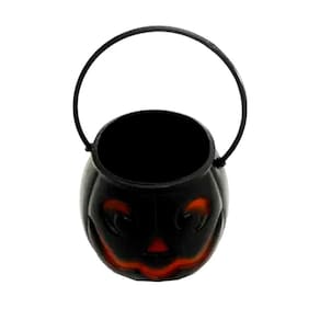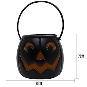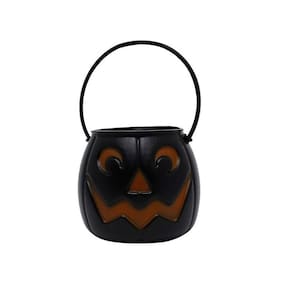 Contém: 01 Mini Balde de Abóbora Pequeno Dark Preto para Decoração Halloween