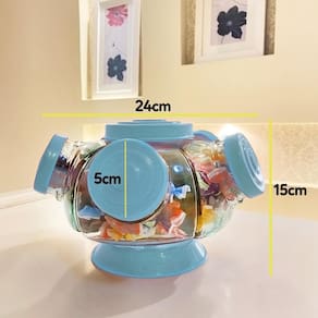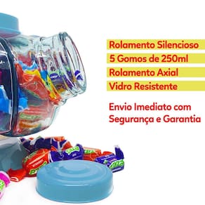 Mini baleiro giratório vidro pequeno antigo bomboniere azul Porta doce baleiro pequeno giratório 5 potes azul claro tiffany / bebê - baleiro artesanal Atenção: Cor Azul Baleiro artesanal com visual retrô atende a todos os tipos de consumidores ávidos por produtos diferenciados e ao mesmo imunes ao tempo. Podendo ser Utilizado em estabelecimentos e em sua própria residência como item de decoração na sala, sala de estar, salão de festas,etc.. Com vidro transparente para ver todos os itens que colocar dentro: Balas, doces e até cápsulas de café. Produto 100% artesanal e com acabamento diferenciado e resistente. Obs: as pequenas imperfeições, tais como irregularidades na espessura, no peso ou no diâmetro e as pequenas bolhas, que às vezes se formam dentro do vidro, são a clara de um produto feito artesanalmente. Todos os produtos acompanham e estão a pronta-entrega. Pediu, chegou Ficha técnica: - mini baleiro de vidro giratório 05 potes azul claro tiffany - vidro transparente - capacidade 250 ml por gomo/pote - tampa em plástico resistente pintado - base em plástico resistente - cores disponíveis: Azul Dimensões do mini baleiro: - comprimento 24 cm - altura 15 cm - peso líquido 2,5kg Itens inclusos 01 mini baleiro giratório de vidro retrô cor azul claro tiffany Marca: Houme