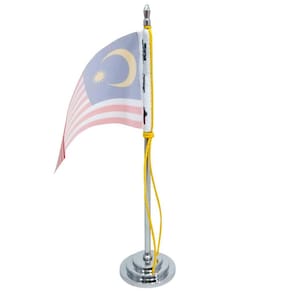 Mini bandeira mesa malásia com 8cm x 5,5cm 15cm mastro Por gentileza se atentem as medidas do produto Medida de 15 cm se refere ao tamanho do mastro da bandeira Medida da bandeira 8 x 5,5 cm Estampa em apenas uma face da bandeira