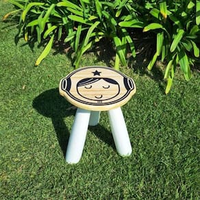 A Mini Banqueta Astronauta conta com assento de madeira removível, com uma estampa encantadora. Feito de madeira de alta qualidade e muito resistente a quedas e arranhões. Além disso, sua removibilidade facilita a limpeza do produto.