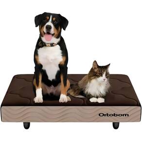Descrição: Apresentamos a Mini Base (Cama Box) para Pet da Ortobom, o cantinho perfeito de conforto e proteção para seu cão ou gato de pequeno porte. Esta mini base é fabricada com materiais de alta qualidade, contendo uma estrutura interna em espuma D23 que oferece suporte macio, porém com a firmeza necessária para o descanso do seu pet. Seu revestimento é em malha de alta qualidade no tampo, com um bordado Matelassê e padrão escuro, enquanto as laterais são em camurça (suede) na cor bege, garantindo um visual elegante e um toque super macio. A base possui tratamento antiácaro e antifungo, promovendo um ambiente mais higiênico e saudável para o animal. Com dimensões compactas de 45cm de largura, 65cm de comprimento e 13cm de altura, é ideal para pets de pequeno porte, suportando até 50kg. Seu design de cama box oferece segurança e aconchego, sendo de uso unilateral (one side).