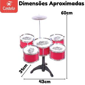 Mini bateria musical infantil vermelho c/luz e banco castela Descrição do produto