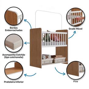 Produzido em MDP de alta qualidade com acabamento em pintura UV, este mini berço para bebê oferece resistência e fácil limpeza. Seu design inteligente conta com grade móvel revestida em PVC e bordas com perfil emborrachado, proporcionando mais segurança e proteção para o bebê.