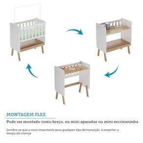 ESPECIFICAÇÕES: Estrutura em MDF Pintura UV atóxica Certificado pelo INMETRO 010525/2024 3 em 1: Mini berço, mini aparador ou mini escrivaninha Estrado com altura fixa Bordas arredondadas e laqueadas Grades fixas Suporta até 40kg Acompanha suporte mosquiteiro Pés no estilo retrô em MDF Acompanha colchão (L x A x P): 84 x 7 x 41,3 cm