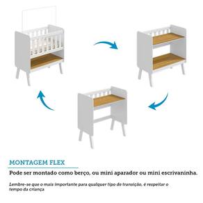 ESPECIFICAÇÕES: Estrutura em MDF Pintura UV atóxica Certificado pelo INMETRO 010525/2024 3 em 1: Mini berço, mini aparador ou mini escrivaninha Estrado com altura fixa Bordas arredondadas e laqueadas Grades fixas Suporta até 40kg Acompanha suporte mosquiteiro Pés no estilo retrô em MDF Acompanha colchão (L x A x P): 84 x 7 x 41,3 cm