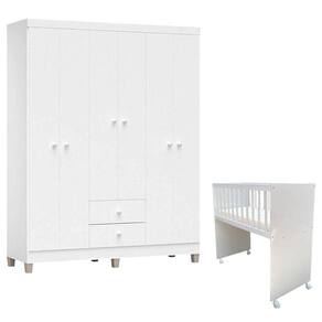 Mini Berço Moisés Alegria com Colchão e Guarda Roupa Ternura Baby 6 Portas Branco Brilho - Incorplac