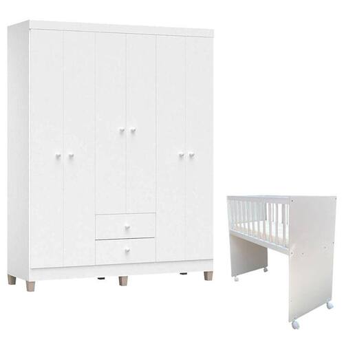 A mamãe começou a montar o quartinho do seu bebê? Apresentamos esse lindo conjunto composto pelo Mini Berço Moisés Alegria e Guarda roupa da linha Ternura desenvolvidos com materiais de excelente qualidade e procedência em MDP. O berço é portátil Ideal para a mamãe ficar pertinho do seu bebê na rotina do dia a dia. Já acompanha o colchão. O guarda roupa e espaçoso possui 6 portas e 2 gavetas, amplo espaço interno para acomodar roupinhas sapatinhos, e outros itens. Conforto e segurança que seu bebê merece aproveite e garanta já o seu!