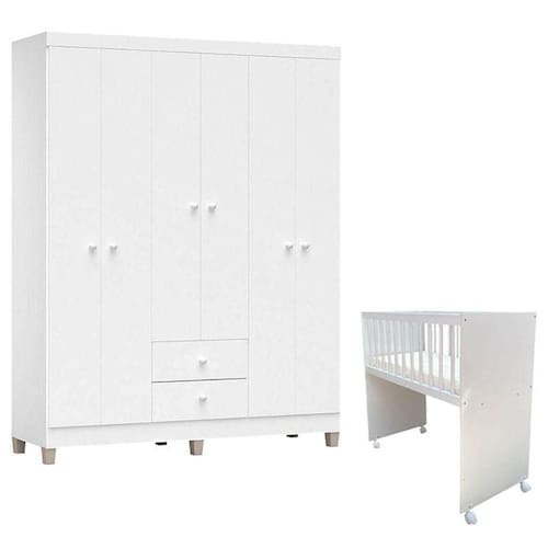A mamãe começou a montar o quartinho do seu bebê? Apresentamos esse lindo conjunto composto pelo Mini Berço Moisés Alegria e Guarda roupa da linha Ternura desenvolvidos com materiais de excelente qualidade e procedência em MDP. O berço é portátil Ideal para a mamãe ficar pertinho do seu bebê na rotina do dia a dia. Já acompanha o colchão. O guarda roupa e espaçoso possui 6 portas e 2 gavetas, amplo espaço interno para acomodar roupinhas sapatinhos, e outros itens. Conforto e que seu bebê merece aproveite e garanta já o seu!