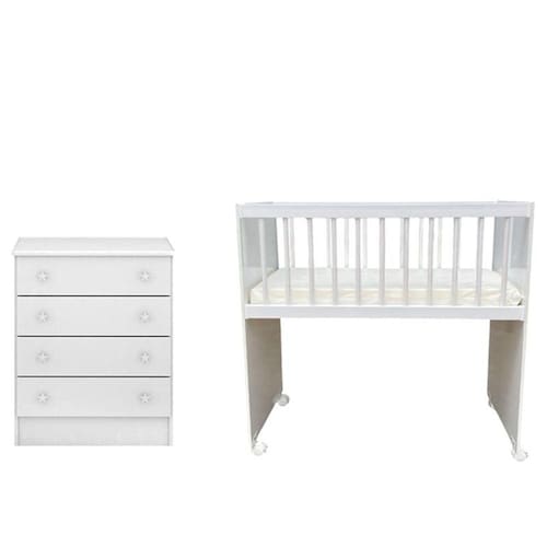 Esta procurando móveis para o quartinho do seu bebê? Apresentamos esse lindo conjunto composto pelo Mini Berço Moisés Alegria e Cômoda Infantil Doce Sonho desenvolvidos com materiais de excelente qualidade e procedência em MDP. O berço é portátil Ideal para a mamãe ficar pertinho do seu bebê na rotina do dia a dia. Para facilitar a locomoção possui rodízios com trava garantindo mais segurança. Já acompanha o colchão. A cômoda é ideal para acomodar roupinha sapatinhos, e outros acessórios do bebê. Conforto e segurança que seu bebê merece aproveite e garanta já o seu!