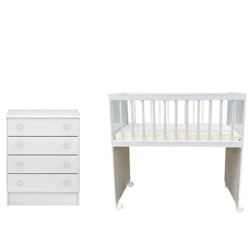Esta procurando móveis para o quartinho do seu bebê? Apresentamos esse lindo conjunto composto pelo Mini Berço Moisés Alegria e Cômoda Infantil Doce Sonho desenvolvidos com materiais de excelente qualidade e procedência em MDP. O berço é portátil Ideal para a mamãe ficar pertinho do seu bebê na rotina do dia a dia. Para facilitar a locomoção possui rodízios com trava garantindo mais . Já acompanha o colchão. A cômoda é ideal para acomodar roupinha sapatinhos, e outros acessórios do bebê. Conforto e que seu bebê merece aproveite e garanta já o seu!