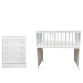Mini Berço Moisés Alegria e Cômoda Infantil 103 Doce Sonho Branco Brilho Qmovi