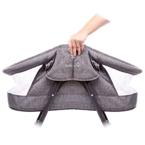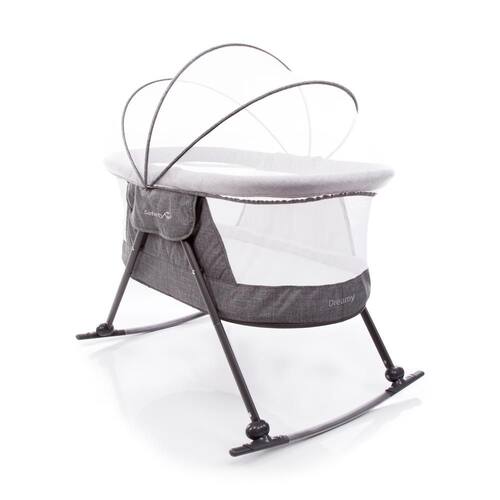 Moisés dreamy safety 1st portátil com função de balanço, cobertura com tela, colchonete macio e fechamento compacto com bolsa de transporte. Estrutura leve, resistente e compacto quando fechado, fácil de montar, transportar e armazenar para usar em qualquer situação. Descrição: