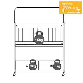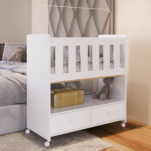 MDPMini Berço Moises Sem Colchao 2 Gavetas BY510 Comm certificado pelo INMETRO n° 002476/2018, é versátil, prático e elegante. Estrutura em MDP de 15 mm, e excelente acabamento em Finish Foil (Fosco). Composto por estrado em MDF Crú de 6 cm, grades em MDF com espaço entre as barras de 5,5 cm, 02 gavetas com corrediças metálicas, acompanha suporte de mosquiteiro e rodízios plásticos com chapa metálica. O colchão indicado é de 86X38 cm (Não Acompanha Colchão). Mini Berço Moisés suporta 15 kg e as gavetas suporta até 3 kg cada. É ideal para ser utilizado ao lado da cama dos pais, facilitando acesso ao recém nascido, além de auxiliar na organização de roupa e objetos. Este móvel chegará em sua casa separado em 01 volume.